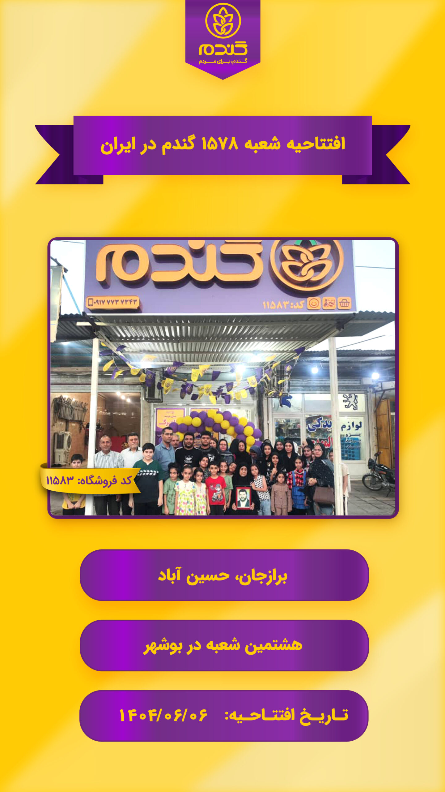 به دلیل ماهیت محلی فروشگاههای زنجیرهای گندم و نفوذ در محلهها و نیز استقرار در نزدیکترین نقطه به مشتریان، این فروشگاه ها به طور متوسط در ابعاد 50 تا 200 متر در حال راه اندازی بوده و مدل کسب وکار آنها مانند سوپر مارکتهای محلی اما به شکل مدرن و یکپارچه خواهد بود.